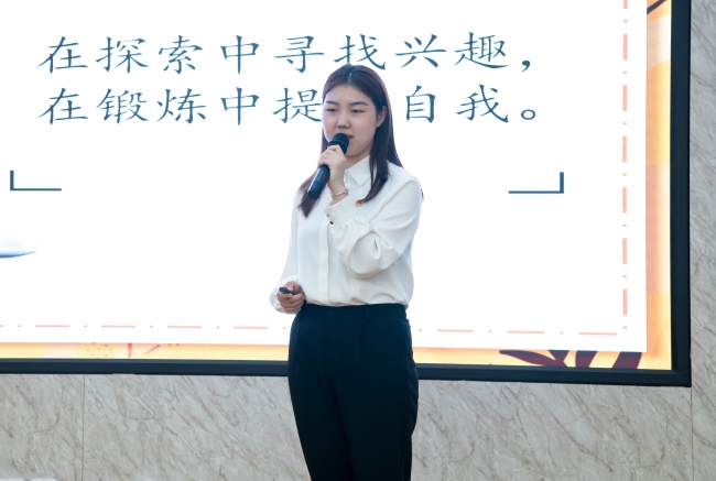 省青马高校班学员余锐、暑期实践百强团队队员岳雨浛、冬奥志愿者张佳琪和国家励志奖学金获得者邓瑞婷四位优秀学生分别上台进行展示,他们以个人演讲的形式,分享了自身学习、实践及担任学生干部的经历,并运用生动形象的语言,结合丰富的事例,从志愿服务、团队合作、社会实践、职业规划等方面讲述了在实践中的奋斗故事,坚定了强国时代青年的历史使命和价值追求,诠释了“理想信念”的深刻内涵,引起了青年学子的强烈共鸣和热烈反响。四位优秀学生代表做出的经验分享主要包括三个方面,一是要勇于实践,在立足实践中不断积累经验、取得成果,在实现中国梦的生动实践中书写人生华章;二是要在青春中追求人生梦想,在奉献中实现自我价值,在党和人民需要的时候冲锋在前,并以全力以赴、脚踏实地的姿态,不断开拓进取;三是要努力学习理论知识,积极参加社会实践活动,不断增长自我见解和能力,为以后的个人成长发展打下坚实基础。