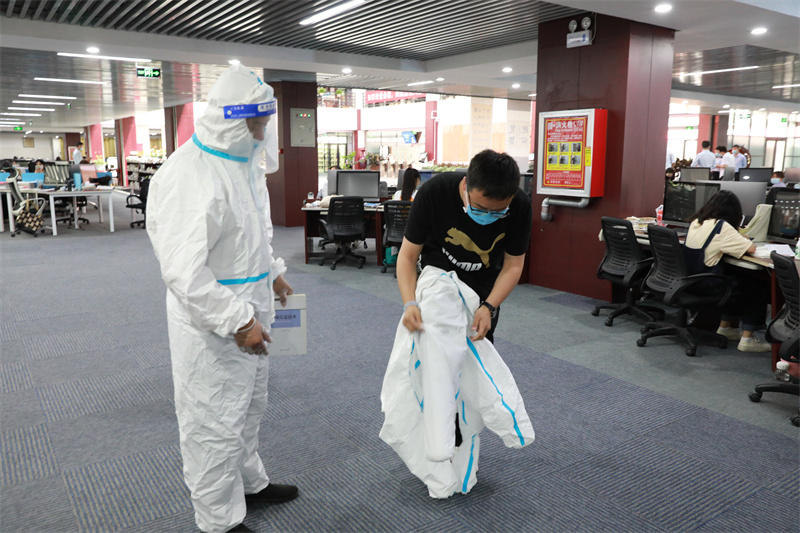 每次下楼进行核酸检测,大家都能保持两米的距离排队,每当我看到医务人员和志愿者们,顶着炎热的天气,穿着厚厚的防护服,为全校师生做核酸检测的场景,敬畏之心油然而生。目前我们要严格遵守学校疫情防控的相关规定,戴好口罩,不聚集、不扎堆,做好自我防护。只要我们同心抗疫、共守校园,这场战“疫”定能成功。