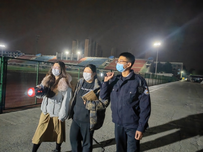 疫情就是命令,防控就是责任。5月9日凌晨2点至4点,这个时段4个值班小组的12个人迅速集合。夜晚的校园显得格外安宁,我和保卫处郑老师、科研处张老师沿着德馨楼至教1、教3的校园围墙仔细排查。寒冷的夜风直往脖子里灌,但想到2万多名师生的健康,我们三个人丝毫没有感觉到凉意。