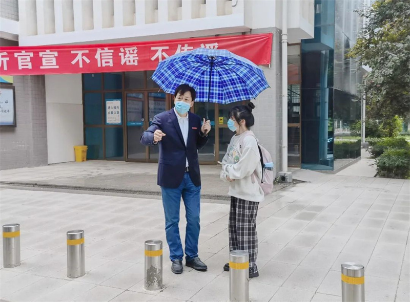 校领导到我们宿舍走访慰问,做自我介绍时,还问我了一些家乡的事情,非常平易近人。校领导与我们面对面交流,了解我们学习生活中面临的困难与问题,并且记录了下来。校内连续多次核酸检测,老师们夜晚也进行值班,为了降低风险,自习教室也严格要求不能超过30人,这些有力的措施保证了校园内正常的生活秩序和教育教学的顺利开展。我想说,谢谢每一位默默无闻付出的老师们,你们辛苦了!