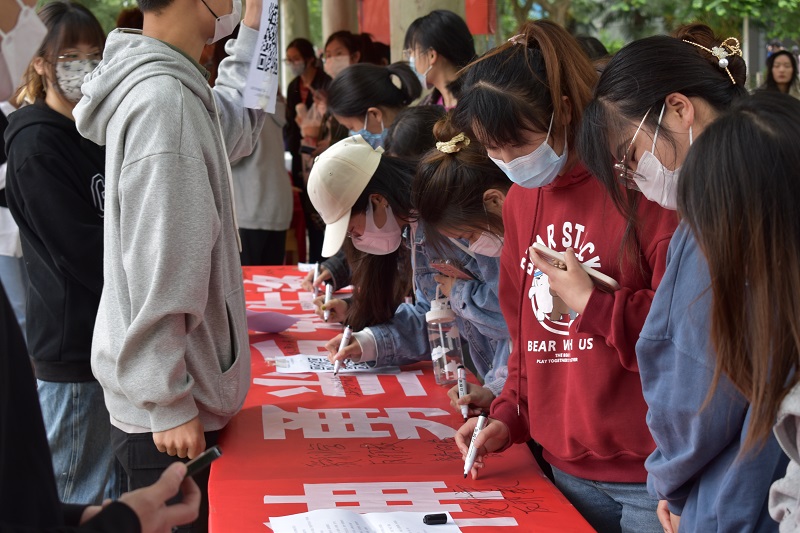 本次活动主要包括发放宣传品、摆放宣传展板、师生联合签名宣誓和网络有奖知识竞答等多种形式。