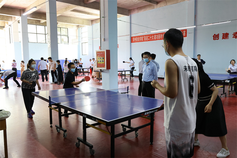 为迎接中国共产党第二十次全国代表大会胜利召开,鼓励教职工为学校本科教学工作合格评估贡献力量,强化工会的教育职能、引领职能、服务职能,营造健康文明、昂扬向上的教职工文化生活,5月20日至24日,校工会在“教工之家”乒乓球活动室举办了“喜迎二十大 建功新时代”教职工乒乓球比赛。各分工会认真组织,共有64名运动员先后进行了36场比赛。