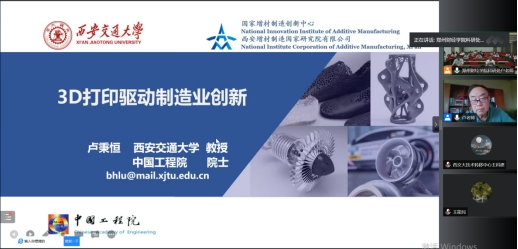 卢秉恒院士在报告中分别就3D打印技术的迅猛发展、3D打印带来的创新、国家增材制造创新中心实践项目及可产业化项目四个方面展开讲解。作为制造业工艺方法大变革的“产物”,3D打印凭借其在激光熔化沉积、激光选区熔化、电子束选区熔化及电弧熔丝等主要工艺上的完善创新,持续攻关重大装备、关键工艺、核心元器件、软件、材料等,已成为主流制造技术并被应用于航空航天、汽车、精准医疗、模具、景观雕塑等行业领域,特别是在航空航天等高端装备的快速开发和迭代升级方面,3D打印已成为新产品开发的有力工具。他指出,3D打印(增材制造)带来的设计创新、材料结构创新和材料领域创新已使其成为制造创新的引领性共性技术,在强调产品快速开发、个性化定制和制造模式创新的同时,更加突出由技术本身所释放的一体化集成、多材料功能梯度、材料科技创新、生命科学创新和共性关键技术攻关的溢出效应和发展潜能。目前,我国不少企业的制造能力强,但产品开发能力相对不足,制约了制造业向产业链顶端的发展,而3D打印则可以通过缩短设计迭代、样机制作、评价、分析、改进、量产等流程帮助我们补足这一短板。此外,卢秉恒院士还向与会人员展示了国家增材制造创新中心及其团队在研发中试、公共测试及共性技术与服务平台建设方面所取得的最新进展和可孵化项目,介绍了西安交通大学3D打印(增材制造)专业人才培养模式,并借此向河南省科技工作者发出“第五届中国(西安)国际3D打印高端论坛”的参会邀请。
