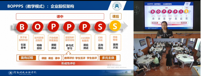 示范课展示环节,李爱红选取了《财商训练》课程中“企业股权架构”为教学内容,基于“BOPPPS”教学模式,从学生学情出发,立足专业定位及培养目标,围绕毕业要求和课程目标设计教学环节,对OBE教学理念进行了清晰阐释。整个教学示范课教学目标明确,重、难点把握准确,教学语言简单明了,教学内容逻辑清楚,教学过程环环相扣,信息化手段和板书有机结合,精彩展现了李教授丰富的教学经验和扎实的专业技能。本次示范课展示对“如何使一节课更有效”、“如何更好地互动”、“如何准备讨论”等常见教学问题做了阐释和解答,对全校教师起到了示范引领作用。