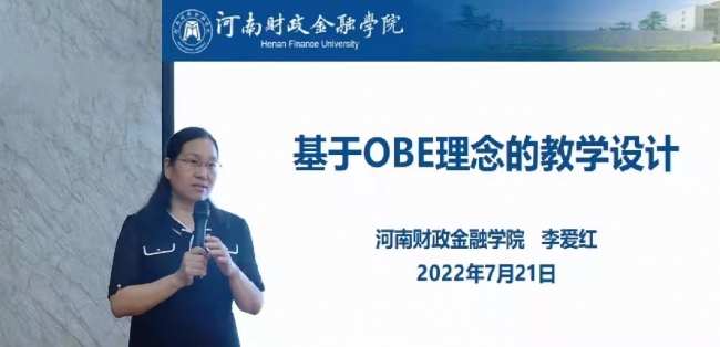 为推动“豫见”新时代 郑财“大先生”课堂教学质量提升年系列专项行动(2022)开展,深入推进学校应用型人才培养模式改革,提升教学设计质量,提高人才培养能力, 7月21日,BEAT365官网特邀河南财政金融学院李爱红教授作题为《基于OBE理念的教学设计》的专题培训。