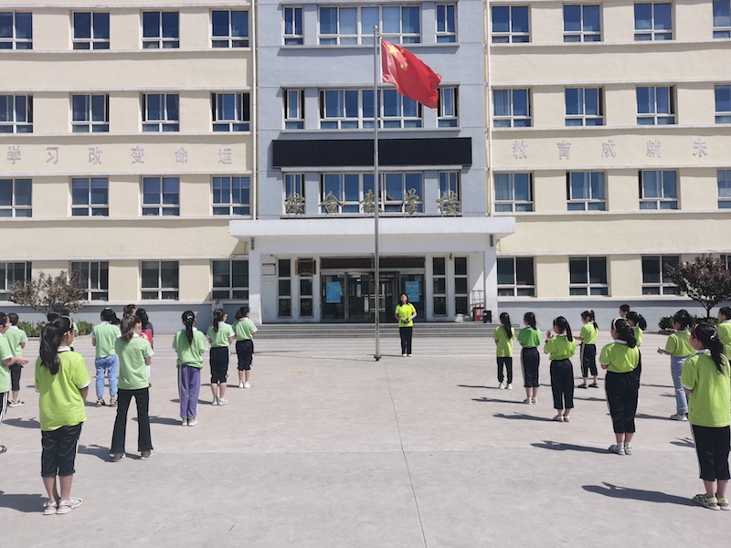 支教团队员与学生们一起升国旗