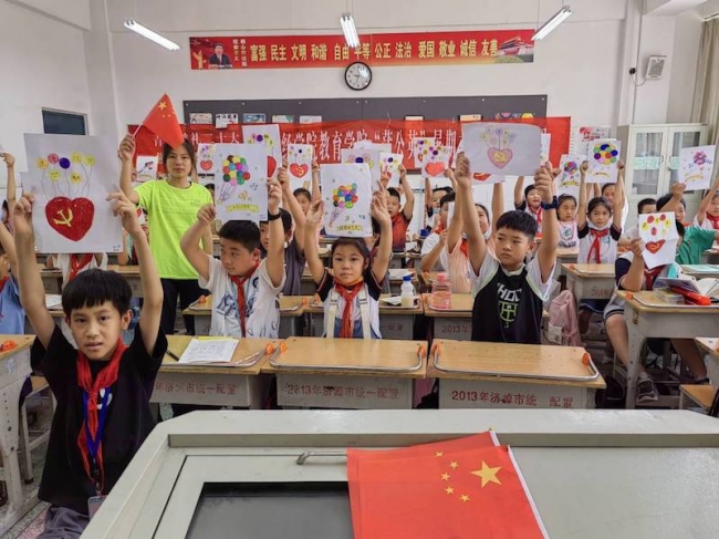 支教团队员带领学生学习社会主义核心价值观