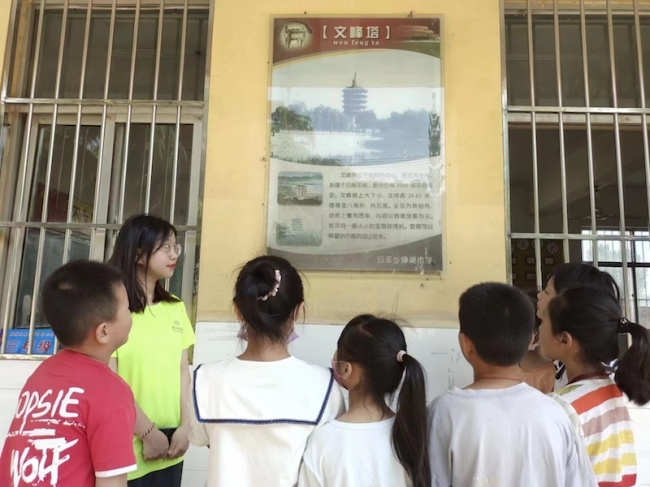 支教团队员向学生们介绍家乡景点文峰塔