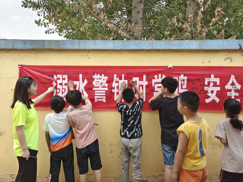 暑期是安全事故的高发时期,为让孩子们度过一个平安快乐的暑假,支教团成员将防溺水教育、疫情防控教育、家庭安全教育、出行安全教育等搬上课堂,通过安全知识的讲解、案例分析、安全事故防范以及发生安全事故后的解决措施等方面,让学生牢固树立安全意识;除此之外,支教团成员还通过宣讲、发放传单等多种形式开展安全教育,让安全之钟长鸣。