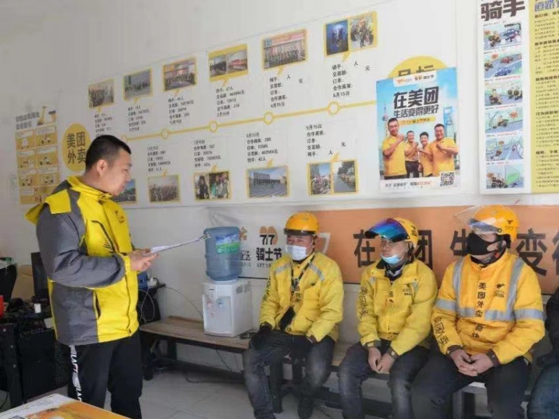 7月1日,调研团来到卫辉市美团外卖总部,与外卖骑手进行了面对面的访谈,倾听骑手们诉说工作经验和维权诉求。通过访谈,调研团发现当地外卖骑手的权益保障现状存在不足之处,对外卖骑手们进行维权知识宣传和普及,让骑手们认识到工作中的权益漏洞,从而在以后的工作中获得更多保障。