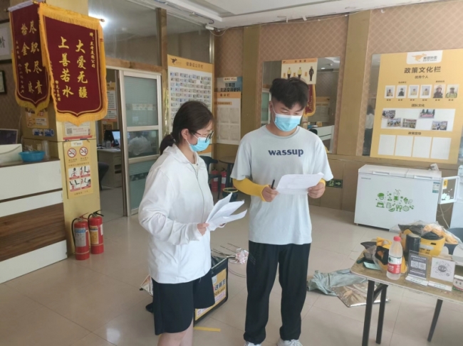 7月6日,调研团来到开封市兰考县美团外卖总部,走访了当地的外卖休息站,了解外卖休息站的使用情况,调研团通过发放宣传手册、调查问卷和播放有关视频进行宣传,拓展外卖骑手权益保障途径。