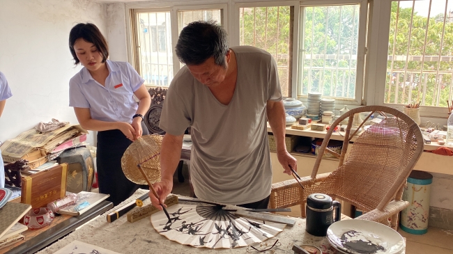 民间艺术家为金融学院“赤子之心”传中华之志暑期社会实践团画扇面