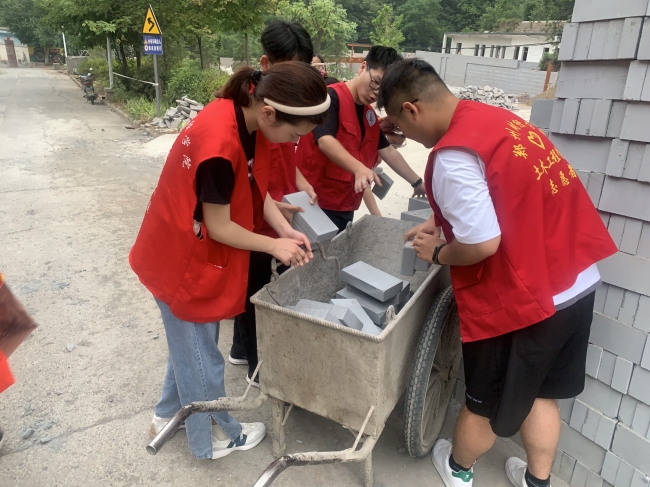 土木工程学院“时代青年”美丽乡村调研暑期社会实践团帮助村民进行房屋搭建