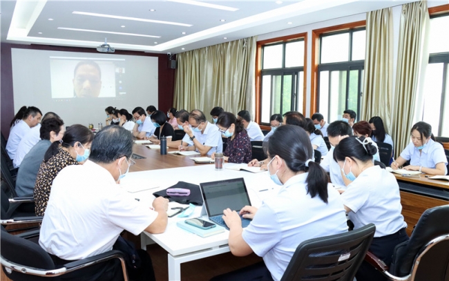 接着,张顺利对本学期线上教学工作提出四点具体要求:一是提高站位,加强指导。各教学单位要严肃对待、强化职责,加强对线上教学工作的组织领导和统筹指导,变挑战为机遇,打好“教学攻坚战”。二是高度重视,精心组织。制定教学方式调整和线上教学实施方案,确保“一个学生也不能少”。三是严格管理,确保质量。教师严格按照课表上课,不能私自调课、合班或分班上课。四是全程跟踪,随时监督。教务处、教学质量监测与评估中心、督导办将实时监督授课教师的授课时间与质量。张顺利强调,线上教学应深入贯彻OBE教学理念,严格按照两性一度的金课标准授课,落实各级文件精神,加强思政教育工作,提升师生政治理论素养。