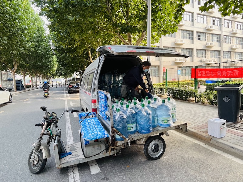 工作人员前往学生宿舍运送免费饮用水