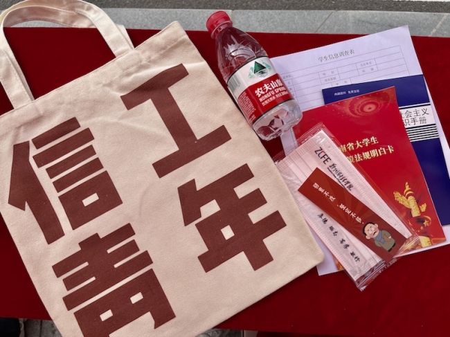 信息工程学院为新生发放定制帆布袋和口罩