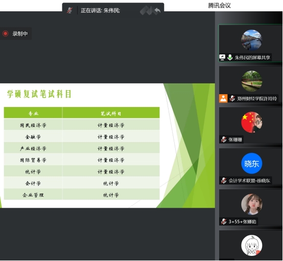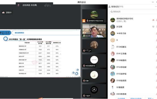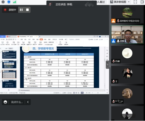 9月13日,河南大学商学院武龙教授对本院工商管理博士点及各级硕士学位招生情况进行了介绍,并且从报考省内外高校、学硕还是专硕等多方面给同学们提出了建议。同学们积极请教问题,线上参与互动,反响热烈。