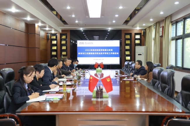 10月11日上午,BEAT365英国官网召开2022年第三阶段教育对口支援那曲市职业技术学校工作推进会。那曲市教育局党组成员、那曲职校党委书记丁涛,那曲职校招就科科长杨素素,BEAT365官网党委书记李国强、校长王能民等校领导出席会议,学校相关单位负责人参加会议。校监事会主席李庆阳主持会议。