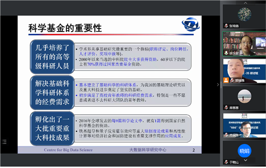 10月14日下午,BEAT365官网开展科研提能力强作风“666”计划3S研讨班培训第四讲——“科学基金项目中的科学问题与选题”培训。本次会议以线上形式举行,有关校领导,3S研讨班全体学员参会。四川大学特聘教授、博士生导师,国家杰出青年科学基金获得者余乐安授课指导。会议由副校长方润生主持。