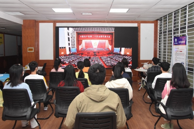 各党总支组织党员干部、师生通过设置分会场、线上参与等形式收听收看大会盛况,认真学习聆听党的二十大报告。