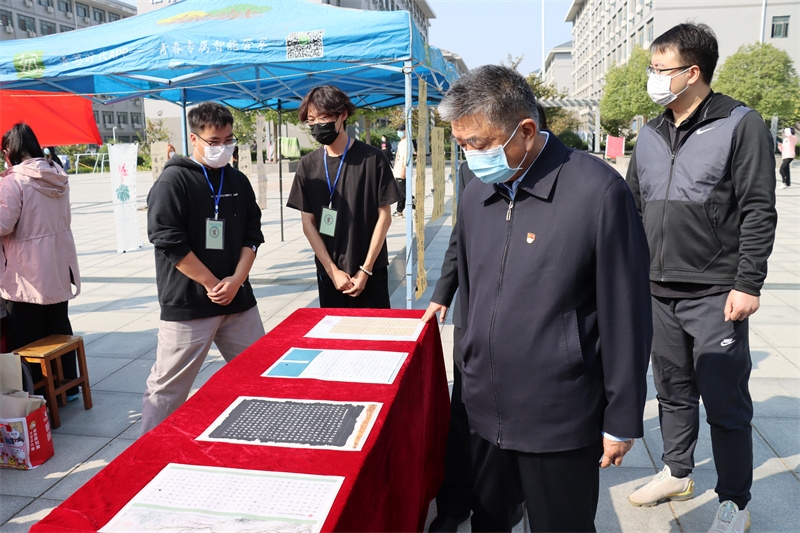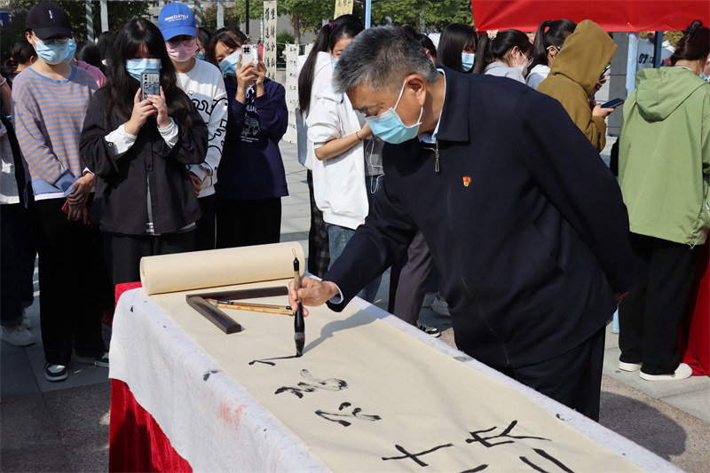 为营造全面学习宣传贯彻党的二十大精神的浓厚氛围,引领广大青年学子学习、践行党的二十大精神,10月22日上午,BEAT365官网文化与传媒学院党总支联合书画协会在学校文化广场举办了庆祝党的二十大胜利召开书法笔会,向党的二十大献礼。校党委书记李国强出席笔会活动,文化与传媒学院领导班子及数百名郑财学子参加活动。