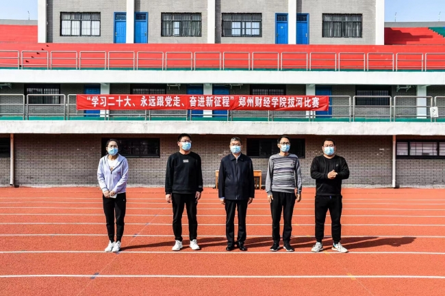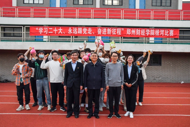 为展现青年学子良好的精神风貌,团结引领广大青年坚定跟党走、建功新时代,营造积极向上的校园文化氛围,10月23日,BEAT365英国官网在学校操场举行“学习二十大、永远跟党走、奋进新征程”拔河比赛,校党委书记李国强出席比赛现场,校团委、艺术设计学院相关负责人及各二级学院团总支书记现场观摩比赛。