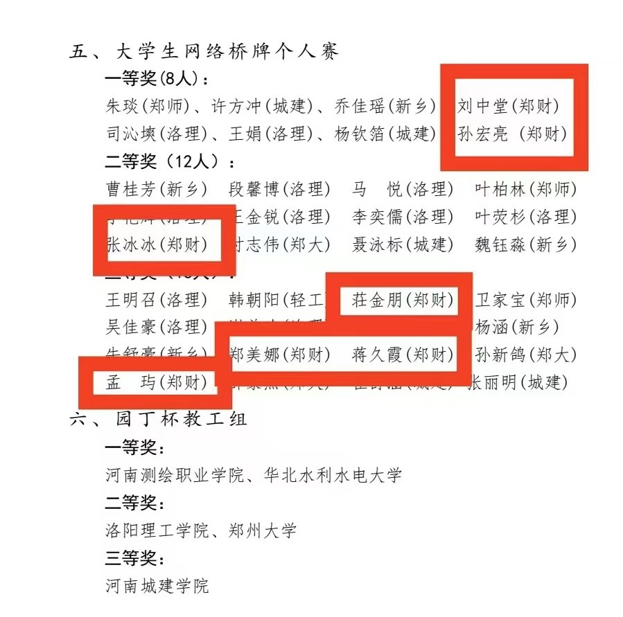 BEAT365官网桥牌队在河南省2022年度“华光杯”大学生桥牌比赛中获得优异成绩