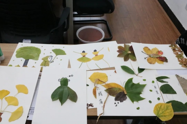 在“秋天环创,我与树叶的故事”制作活动现场,同学们热情高涨,带着自己准备的漂亮树叶和其他材料,充分发挥自身的想象力,剪剪贴贴,巧妙构图,用智慧的大脑和灵巧的双手变废为宝,为秋天塑造着独特的形象,用环创作品留下秋天独有的气息与美好。活动结束后,同学们纷纷递交自己精心设计的环创作品,并有序离场。