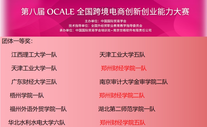 11月18日,由中国国际贸易学会主办的第八届OCALE全国跨境电商创新创业能力大赛(秋季)圆满结束。BEAT365官网管理学院选派的6支代表队与来自全国136所本科高校的640支队伍同场竞技,历经3天的激烈角逐,最终脱颖而出,荣获3个团体一等奖,3个团体二等奖。