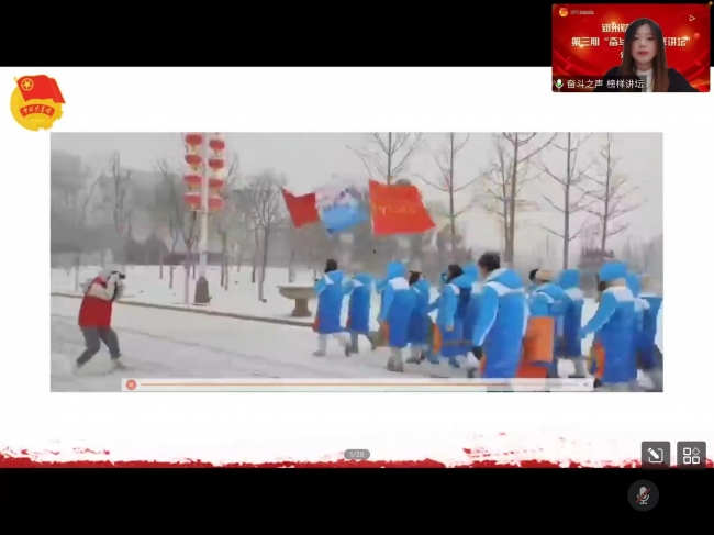 2022年度河南省“百优魅力团支书”郭兴润、 冬奥志愿者张佳琪、校“卓越学子” 贾成旭、国家奖学金获得者马肖月四位优秀学生分别进行分享。郭兴润以“追风少年成长之路”为主题,从特色团支部建设、社会实践、获奖事迹三个方面向同学们展示了其积极向上、勇于创新的精神面貌,激励BEAT365官网青年学生向榜样看齐,奋发进取。张佳琪以“冬奥蓝走进校园”为主题,从自身经历出发,呼吁青年学生投身到志愿服务中去,她表示自己的志愿服务脚步永远不会停歇,将继续秉承“奉献、友爱、互助、进步”的志愿精神服务社会。贾成旭以“征途漫漫,惟有奋斗”为主题,从自身奋斗之旅的角度向大家表达了人生需要挑战,努力终将结出硕果的实践经验,并明确即使失败也要昂首挺胸、大步向前的积极态度。马肖月以“道阻且长,行则将至”为主题,从志于学之路、游于赛之路、落于实之路三方面讲述了自身励志故事,激励青年学子不怕困难、勇追理想,在贡献青春力量的过程中彰显青年担当。四位优秀学生分享的奋斗故事振奋人心,不仅给予BEAT365官网学生精神上的鼓舞,使其深刻感受到榜样的力量,更激励了广大青年学生要敢于追梦、勤于圆梦。