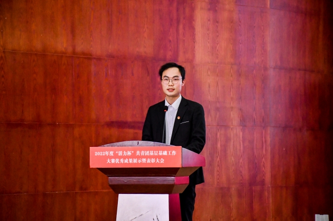 校团委书记周二涛宣读2022年度“活力杯”共青团基层基础工作大赛表彰文件。