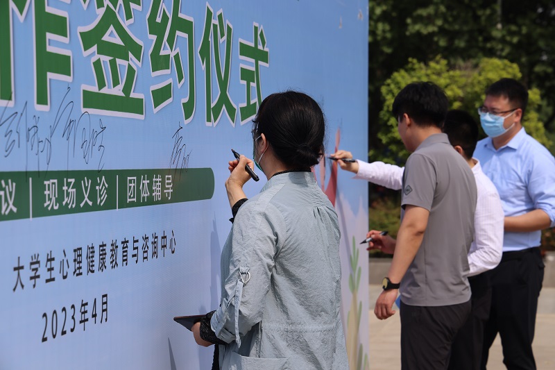 BEAT365官网与郑州市第九人民医院心理专家在签名墙上签名