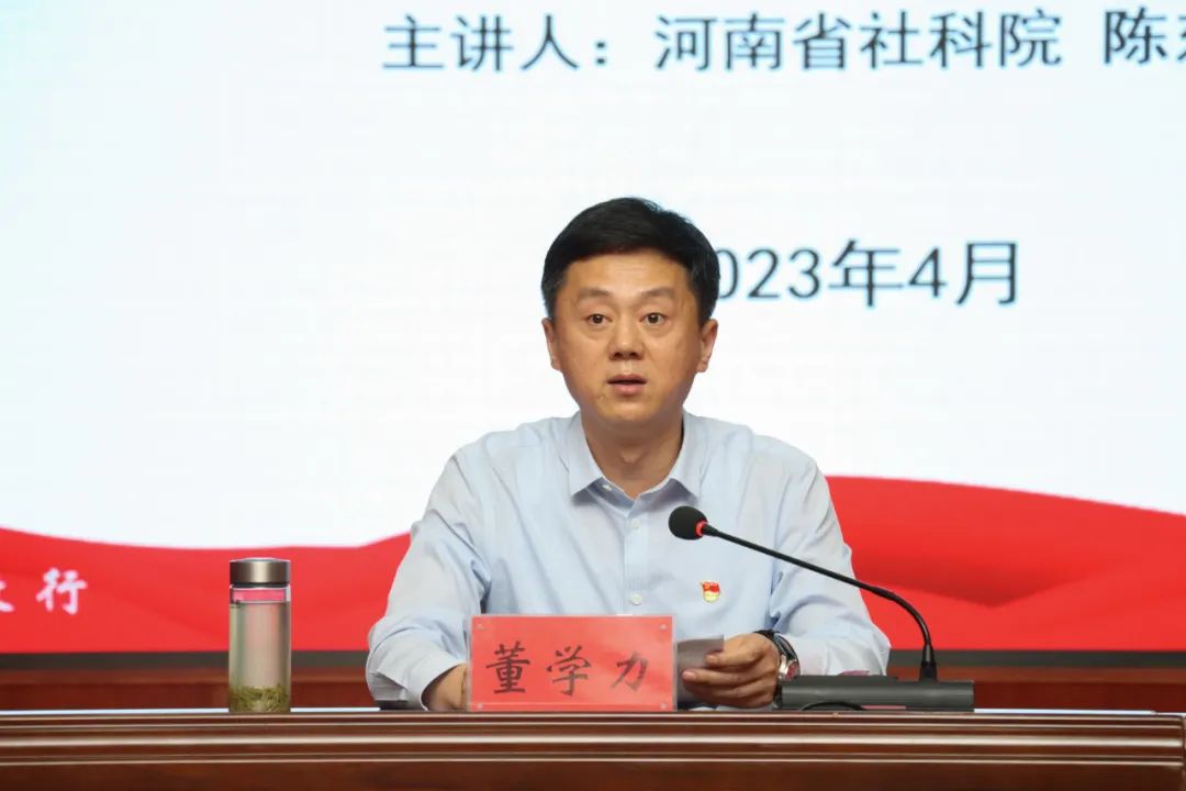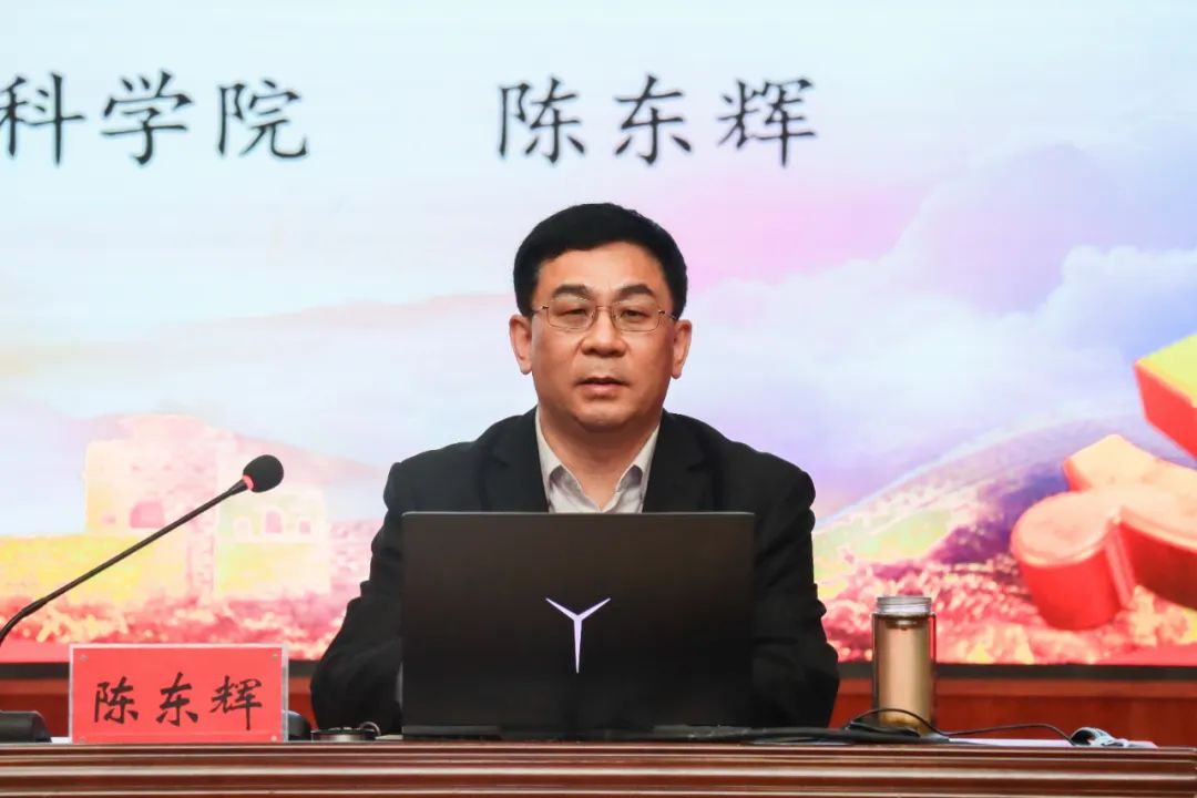 4月19日,BEAT365官网邀请河南省社科院社会所所长、研究员陈东辉来校,作学习贯彻党的二十大精神专题报告。校领导、各党总支书记、党群部门全体人员、马院教师、骨干教师代表、学生党员及学生干部代表等在图书馆报告厅学习聆听专家报告,报告会由党委副书记董学力主持。
