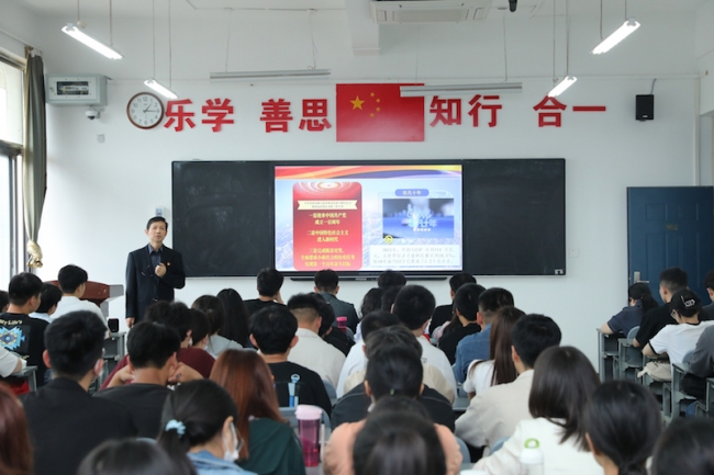 为扎实推进学习贯彻习近平新时代中国特色社会主义思想主题教育,牢牢把握“学思想、强党性、重实践、建新功”总要求,5月25日下午,副校长方润生在J3-502教室为智能工程学院和外国语学院师生代表讲授了一堂专题党课。