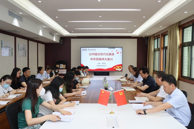 牛钦民从“接续奋斗,追求千年梦想”“立足国情,开辟全新道路”“凝心聚力,推进复兴伟业”三个方面,用领学及集中讨论的方法展开授课。授课现场气氛紧凑热烈,内容深入浅出。他从1840年鸦片战争以后,中国逐步成为半殖民地半封建社会,国家蒙辱、人民蒙难、文明蒙尘,中华民族遭受了前所未有的劫难讲到1921年中国产生了共产党,再到1979年邓小平创造性地提出了“中国式的现代化”。这100多年来,中国共产党团结带领中国人民进行了一切奋斗、一切牺牲、一切创造,就是为了把我国建设成为现代化强国,实现中华民族伟大复兴。