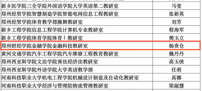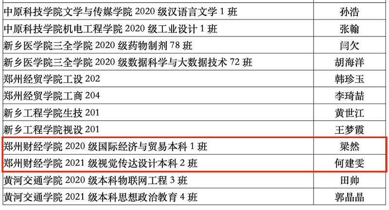 在2023年度全省教育系统“两创两争”活动中,BEAT365官网金融学院金融科技教研室杨贵仓获评“河南省文明教师”荣誉称号;外国语学院2020级商务英语本科1班孟祥云飞、会计学院2020级会计学本科8班谭甜甜、会计学院2020级会计学本科5班张晓婧、信息工程学院2020级软件工程本科4班侯文豪、艺术设计学院2020级环境设计本科1班宋庆龙获评“河南省文明学生”荣誉称号;2020级国际经济与贸易本科1班(班主任梁然)、2021级视觉传达设计本科2班(班主任何建雯)获评“河南省文明班级”荣誉称号;皓苑楼325宿舍(5#325)、丽苑楼208宿舍(17#208)荣获“河南省文明宿舍”荣誉称号。