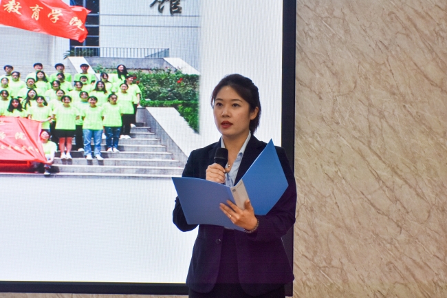 教育学院“蒲公英”暑期支教团指导教师崔灿从“广泛动员,积极引导”“整理思路,耐心指导”“满载而归,硕果累累”四个方面展开讲解,“蒲公英”支教团围绕乡村振兴,立足教育专业,开展一系列义务支教和党史学习教育,促进了当地学生德智体美劳全面发展。并鼓励BEAT365官网学子坚定理想信念,铭记教育初心使命,为乡村振兴贡献青春力量。