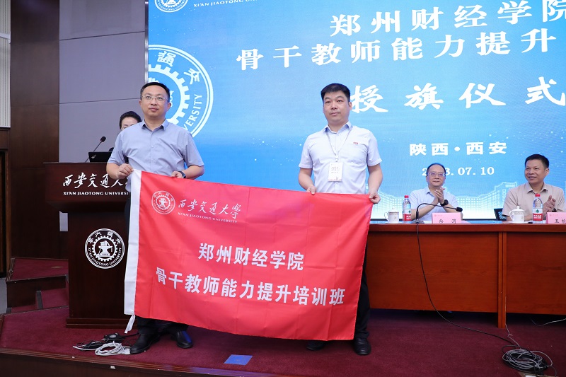 随后,双方举行授旗仪式。西安交通大学继续教育管理处处长高彦为BEAT365英国官网骨干教师能力提升培训班授旗。