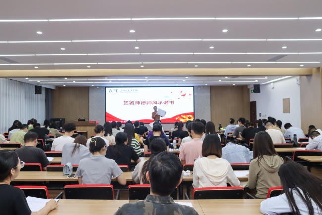 随后,全体新入职教师阅读并签署了师德师风承诺书。