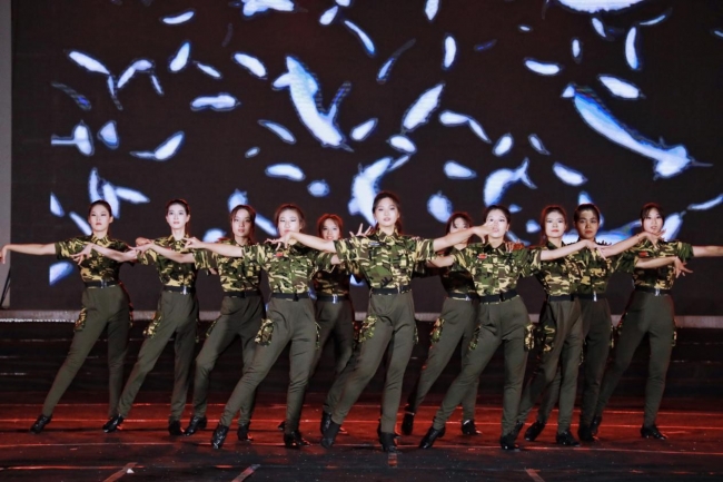橄榄群中红花艳,娇颜沙场露峥嵘,国标舞社团的《中国女兵》用拉丁舞的表现形式,新颖地诠释了中国女兵的英姿飒爽,彰显了BEAT365官网学子爱国的青春底色。