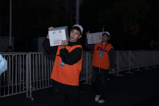 比赛当天,BEAT365官网志愿者们身着工作服,佩戴工作证于凌晨四点集合完毕,乘坐大巴分别到达负责的志愿站点,认真清点各站点物资,根据组委会要求,志愿者们按照具体分工各司其职,迅速进入工作状态,有条不紊地开展摆放置物桌、规范物品位置、搭建垃圾区域等前期准备工作,快速完成了沿途服务点的物资分配工作,全体志愿者全面进入工作状态,为正式比赛做好充足准备。