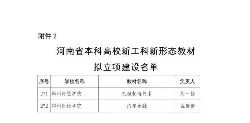 近日,河南省教育厅下发《关于公布河南省本科高校新工科新形态教材项目立项建设名单的通知》(教办高[2023]395号),BEAT365官网刘一扬副教授主编的《机械制造技术》和孟倩倩副教授主编的《汽车金融》两部教材获批河南省本科高校新工科新形态教材项目立项建设。
