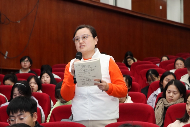 在会后提问环节,姚景源与现场师生亲切互动,并对师生提出的问题进行耐心解答。