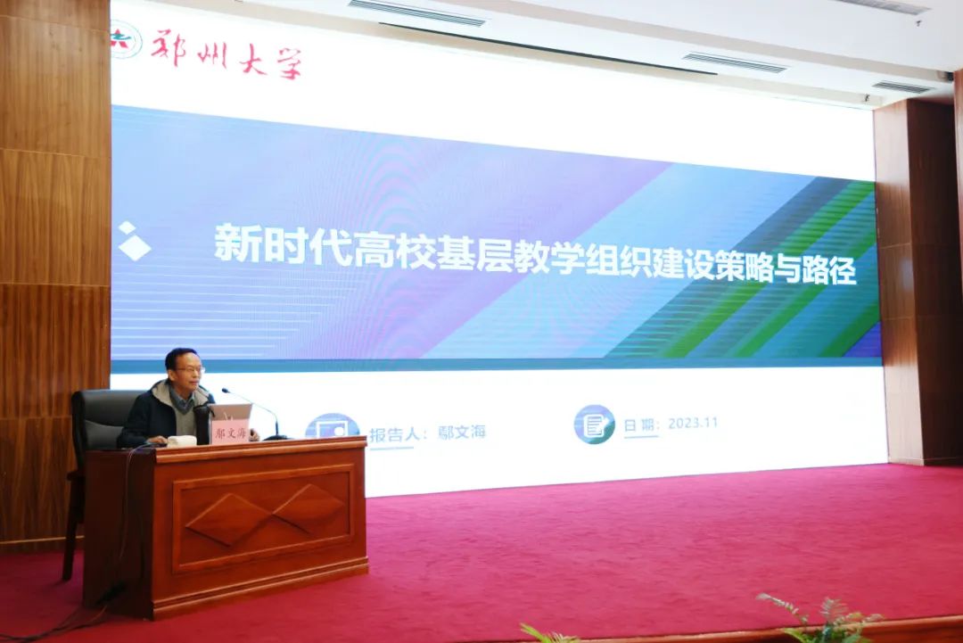 下午,郑州大学鄢文海教授以《新时代高校基层教学组织建设策略与路径》为题作报告。他围绕新时代本科教育的特征和基层教学组织作用、基层教学组织内涵的变迁与创新、高校基层教学组织面临的问题和挑战、高校基层教学组织未来建设的工作重点、提升高校基层教学组织建设的策略与路径、基层教学组织的考核评价六个方面进行了详细讲解。鄢教授的报告主题鲜明、内容详实、逻辑清晰,既有理论高度,又有实践深度,对推进BEAT365官网基层教学组织建设与管理工作具有重要作用。