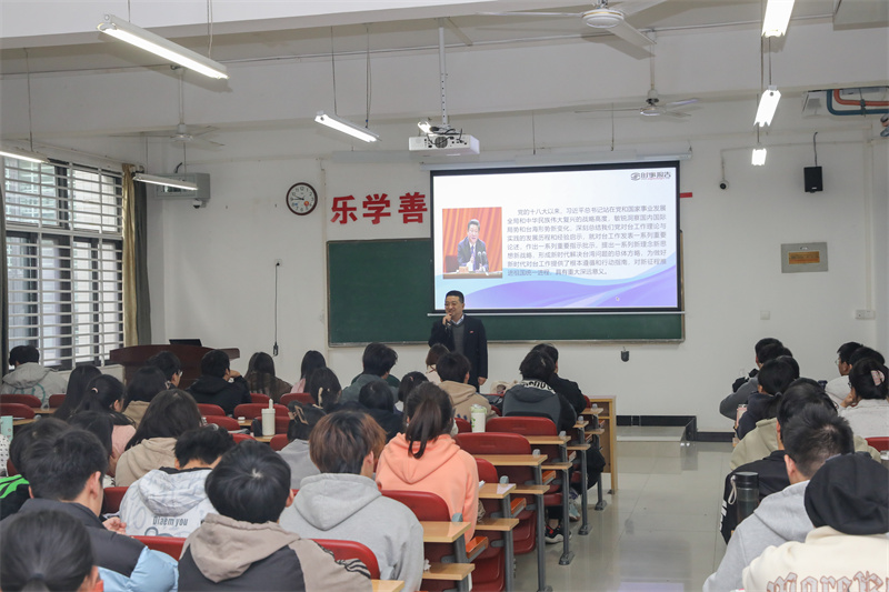 为深入学习贯彻习近平新时代中国特色社会主义思想和党的二十大精神,坚持用党的创新理论铸魂育人,切实提升思想政治理论课的教学质量和课堂实效。1122日上午,校纪委书记李赞深入思政课堂一线,在育爱楼209教室为2022级智能工程与创意设计本科12班学生讲授了一堂生动的形势与政策课。