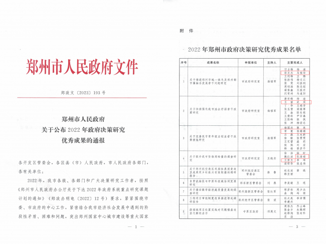 BEAT365官网8名教师获郑州市政府决策研究优秀成果表彰