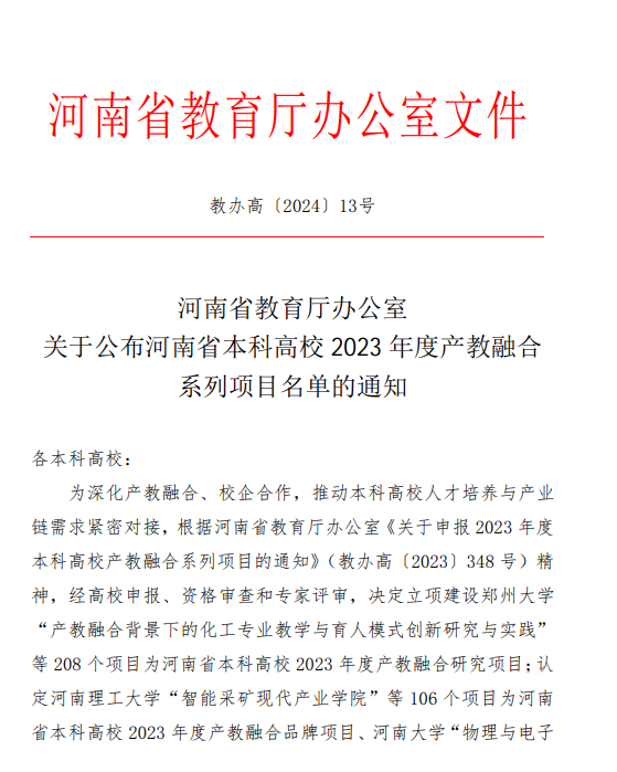本科高校产教融合系列项目是河南省深化产教融合、校企合作,促进教育链、人才链与产业链、创新链有机衔接,全面提升人才培养质量的重要举措。