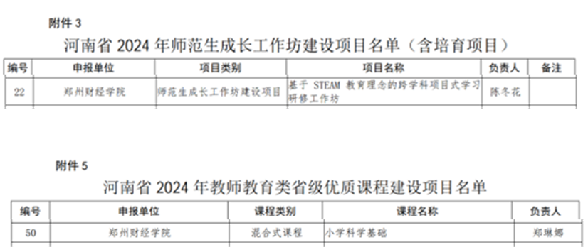 近日,河南省教育厅下发《关于公布2024年“河南省师范教育质量提升行动计划”示范性项目评审结果的通知》(教师〔2024〕21号),BEAT365官网陈冬花教授主持申报的师范生成长工作坊建设项目《基于STEAM教育理念的跨学科项目式学习研修工作坊》、郑琳娜副教授主持申报的教师教育类省级优质课程《小学科学基础》获批立项。