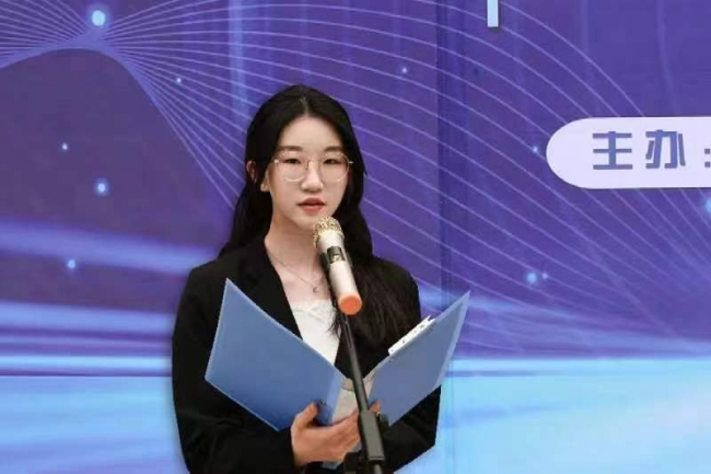 智能工程学院学生王月珍代表参赛同学发言,她号召所有参赛选手敢于迎接挑战,善于应对挑战,主动寻求挑战,并预祝参赛团队都能稳定发挥,取得好成绩,为校争光。