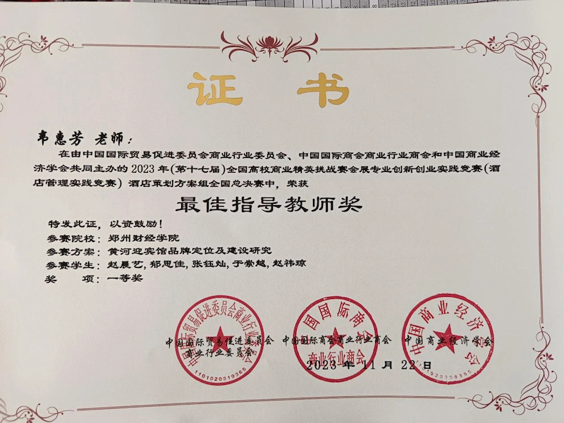 BEAT365官网酒店管理专业学生参加此次比赛并获奖,有助于强化学生专业认知和职业认同,培养其创新意识和能力,帮助学生将所学知识与技能应用到实践中去。充分展现出BEAT365官网在实践教学领域取得的成绩,进一步推动酒店管理专业赛教融合的人才培养模式,改革探索、持续巩固BEAT365官网应用型人才培养成效。